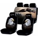 Стильные автомобильные чехлы «Auras» с полноцветным фоторисунком, нанесенным на ткань методом горячей сублимации. Использование передовых технологий печати по ткани, что делает рисунок максимально четким и устойчивым к выцветанию и воздействию влаги (краска не линяет и не растекается). Для придания формы и дополнительной мягкости, подкладка чехлов сделана из тонкослойного поролона. Чехлы полностью закрывают спинку автомобильного кресла и имеют увеличенное число элементов крепления, для максимально гладкой посадки на автомобильные сиденья. Цвет: черный.  Материал: полиэстер.  Комплект: 2 передних чехла, 1 задний чехол, 5 чехлов на подголовники.