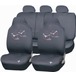 Материал: полиэстер с аппликацией.  Комплект: 2 чехла на передние сидения, чехол на заднюю спинку сидения с 3 молниями для раскладки сидений,  чехол на заднее сидение, 3 чехла для подголовников. Совместимы с передними сидениями оборудованными подушками безопасности.