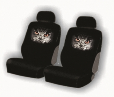 Чехлы для передних сидений из натурального хлопка с закрытой спинкой. Подходят для большинства автомобильных сидений со съемными подголовниками. Печать рисунка сделана методом "шелкографии", что гарантирует долговечность рисунка. В комплект также входят 2 чехла на подголовники и защитные накидки для спинок передних сидений из прозрачной пленки. Чехлы упакованы в матерчатую сумочку.