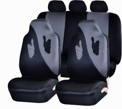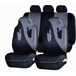 Материал: полиэстер с аппликацией.  Комплект: 2 чехла на передние сидения, чехол на заднюю спинку сидения с 3 молниями для раскладки сидений,  чехол на заднее сидение, 3 чехла для подголовников. Совместимы с передними сидениями оборудованными подушками безопасности.