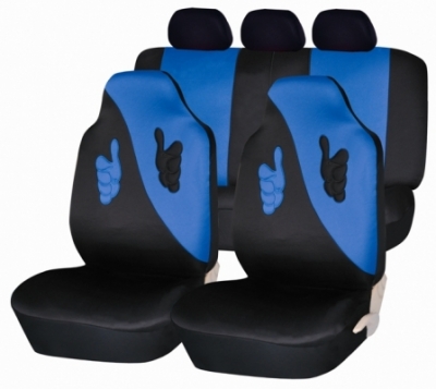 Материал: полиэстер с аппликацией.  Комплект: 2 чехла на передние сидения, чехол на заднюю спинку сидения с 3 молниями для раскладки сидений,  чехол на заднее сидение, 3 чехла для подголовников. Совместимы с передними сидениями оборудованными подушками безопасности.
