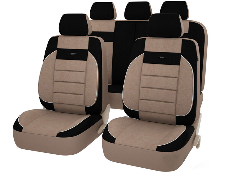 Универсальные, для большинства легковых автомобилей. Комплект: (2 чехла на передние сиденья, 2 чехла на передние спинки с карманами, 5 подголовников, 2 чехла для заднего сиденья, 2 чехла для задней спинки, набор для крепежа). Для передних сидений оборудованных подушками безопасности. Для автомобилей с раскладывающейся пополам или 60/40 задней спинкой сиденья , чехол снабжен 3 молниями. Также имеются 3 молнии для раскладки задних сидений. Материал: велюр. Подкладка: поролон - 5 мм. Ортопедическая поддержка спины.