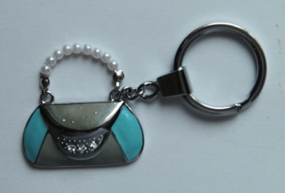 Брелок для автомобильных ключей "Голубая сумочка" со стразами