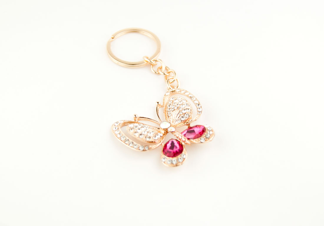 Брелок для автомобильных ключей "Бабочка со стразами", розовый