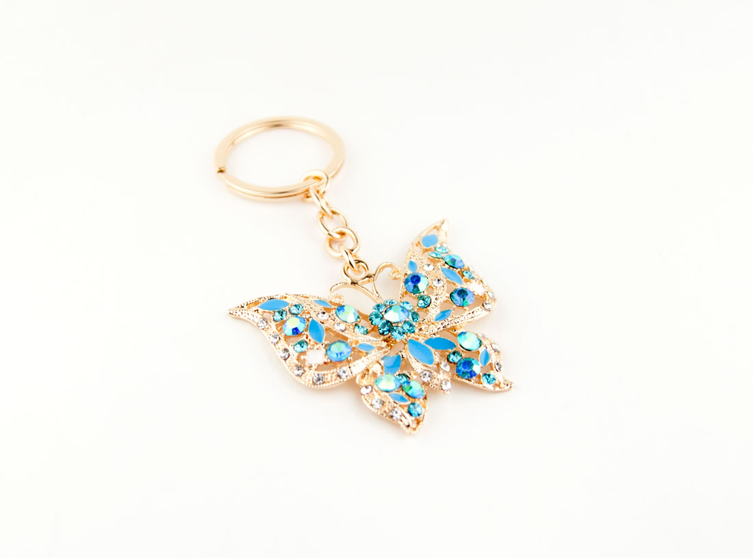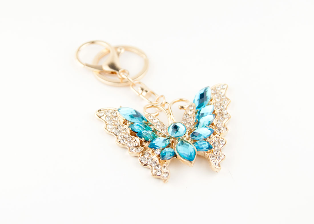 Брелок для автомобильных ключей "Бабочка со стразами", голубой