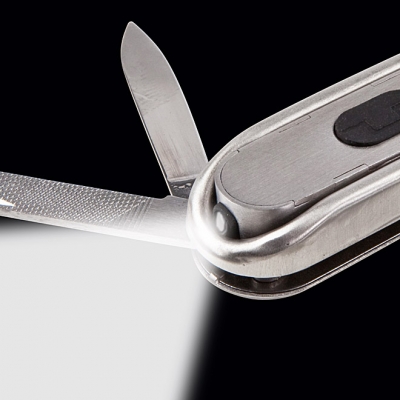 состав данного набора мульти-инструментов входят небольшой ножичек, ножницы, отвёртка, пилка, предназначенная для осуществления ухода за ногтями. Этот набор функционален и компактен.