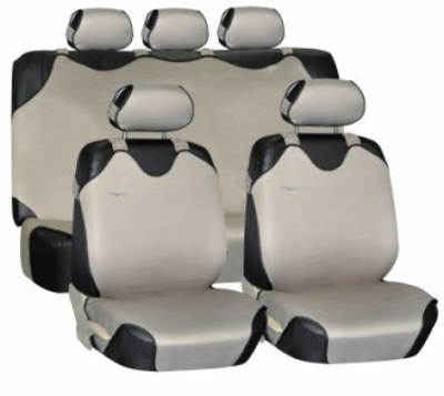 Материал: прочная полиэстровая ткань, имитирующая кожу, поролон 2мм. Комплект: 2 передних сиденья, 1 задняя спинка, 1 заднее сиденье, 5 подголовников. Сделано в Китае.