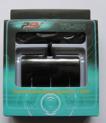 Тройной удлинитель в прикуриватель с 2-мя входами USB
