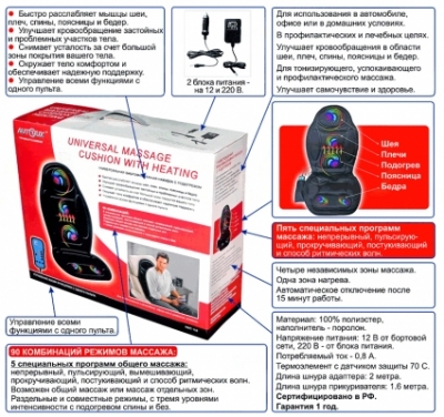 Пять специальных программ общего массажа (непрерывный, пульсирующий, вымешивающий, прокручивающий, постукивающий и способ ритмических волн).