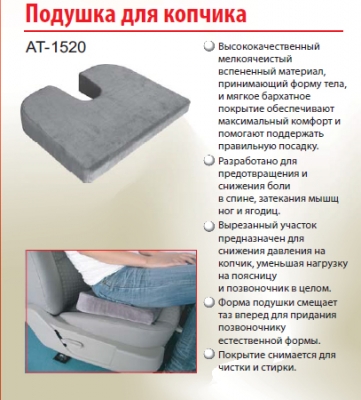 Позволяет равномерно распределять нагрузку на позвоночник, придает ему правильную форму. Материал фоамикс помогает уменьшать давление на мышцы ног и ягодиц. Вырез в задней части подушки снижает давление на копчик, предотвращает появление болезненных ощущений от продолжительной езды.