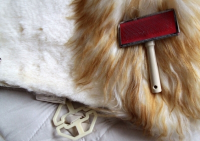 Высохшую накидку несколько раз встряхнуть и расчесать щеткой с редкими зубьями по направлению ворса.