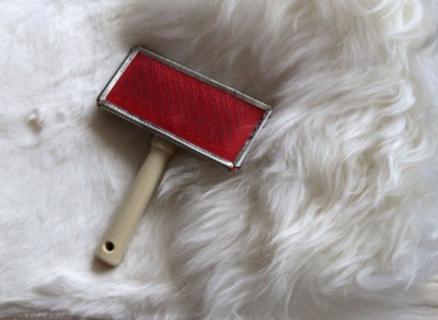 Высохшую накидку несколько раз встряхнуть и расчесать щеткой с редкими зубьями по направлению ворса.