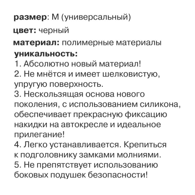 • Размеры чехла на подголовник: длина - 26 см, ширина - 17 см;