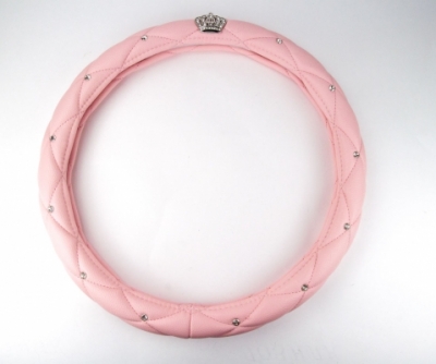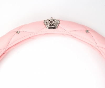 Оплетка на рулевое колесо "Корона"розовая со стразами