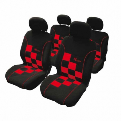 Автомобильные чехлы на сиденья  RACING, цвет: черный-красный, набор 8 предметов. Универсальные.