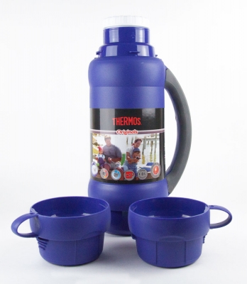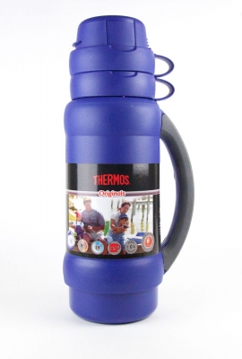 Термос со стеклянной колбой 1л, синий