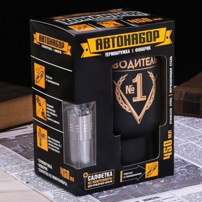 • Комплектация: термокружка  из нержавеющей стали и пластика для горячих и холодных напитков, работает от автомобильного прикуривателя, крышка-непроливайка с клапаном, подходит для стандартных автомобильных подстаканников, салфетка из микрофибры, светодиодный фонарик.