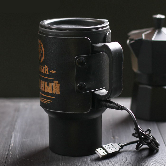 • Комплектация: термокружка  из нержавеющей стали и пластика для горячих и холодных напитков, работает от USB разъема в автомобиле, компьютере или ноутбуке (провод в комплекте), крышка-непроливайка с клапаном, подходит для стандартных автомобильных подстаканников.