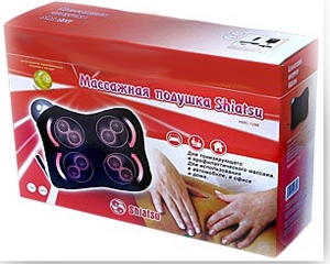 Массажная подушка «Шиацу», предназначена для локального тонизирующего и профилактического массажа различных частей тела, по древнеяпонской методике Ши-ацу (ши - пальцы, ацу - надавливание). Благодаря компактным размерам, ее легко и удобно использовать в автомобиле, офисе, дома или на даче. Массажер «Шиацу» моделирует технику глубокого вымешивающего массажа, с воздействием на акупунктурные точки. Воздействие осуществляют четыре массажных механизма. Глубоко вымешивая напряженные мышечные узлы, массажер расслабляет или тонизирует их, обеспечивая прекрасный бодрящий массаж. Достоинство массажной подушки - небольшие габариты и большая мощность. Это позволяет массировать различные части тела - спину, шею, бедра и т.д. А малый вес и габариты, позволяют брать ее на работу, на дачу, на тренировку, в гости и т.д. Массажная накидка «Шиацу» незаменима для людей ведущих малоподвижный образ жизни, таких как водители, офисные работники. Цвет: черный. Материал: 100% полиэстер, поролон, пластик . Размер: 30 х 23 см. Комплект: подушка, кабель 12 В, адаптер 220 В, инструкция на русском языке. Гарантия: 1 год.