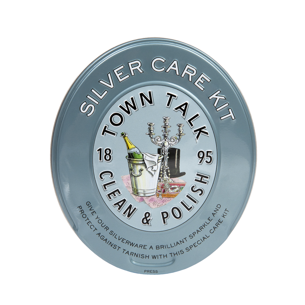 Этот замечательный набор для ухода за серебром включает в себя восемь влажных салфеток и одну специально пропитанную сухую салфетку из ткани     (20 х 20 см) для чистки и полировки серебра и посеребренных изделий. Помимо блеска, комплект также обеспечивает отличную защиту от влияния окружающей среды. Набор поставляется в декоративной жестяной банке на память и является идеальным подарком для тех, кто ценит свое серебро! Способ применения. Используйте одну из влажных салфеток, чтобы очистить изделие, затем отполируйте сухой салфеткой до достижения желаемого блеска.   Производитель: Town Talk Polish Co LTD, Великобритания.