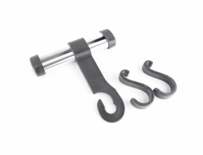 Крючки для сумок HEBE в автомобиль. Для одежды, зонтов, сумок и т.п. Для установки в любом автомобиле. Материал: пластик, алюминий. Комплект из крючка для крепления, направляющей, в которой закреплены два многофункциональных крючка. Способ применения. Приподнять подголовник и закрепить вешалку при помощи крючка. Подголовник вернуть в первоначальное положение ( согласно рисунка на упаковке). Производитель Hebe, Тайвань.