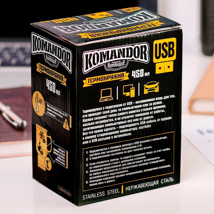 • Описание: для горячих и холодных напитков, работает от USB разъема в автомобиле, компьютере или ноутбуке (провод в комплекте)