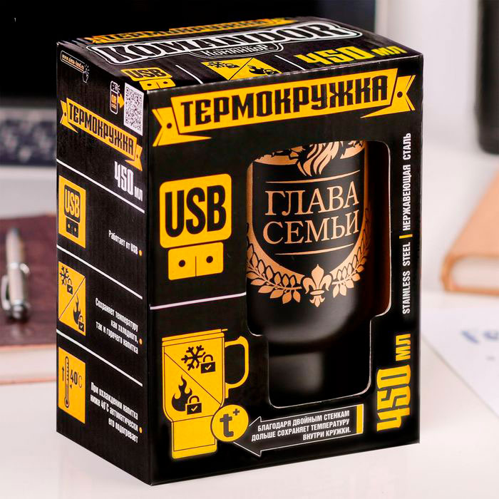 Термокружка автомобильная "Глава семьи" 450 мл, 5В