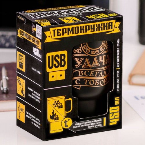 Термокружка автомобильная "Удача всегда с тобой" 450 мл, 5В