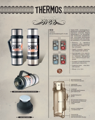 Термос NCB-12B Rocket Bottle Black легкий и прочный, изготовлен с использованием технологии глубокого вакуума, что дает в результате длительный срок сохранности температуры жидкости - от 36 до 48 часов. Крышка максимально герметична, кроме того, имеется конструкция "стоп", которая обеспечивает герметичность термоса даже в гризонтальном положении.