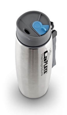 Удобство питья из данной кружки-термоса обеспечена наличием в ее крышке особого клапана, легко и быстро закрывающегося или открывающегося при необходимости. Благодаря предусмотренному производителем крепкому ремешку, термос можно носить на запястье.