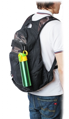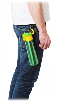 Для удобства переноски предусмотрен карабин, который размещается на корпусе термоса и гарантирует его надежное крепление к рюкзаку, ремню, снаряжению. Подходит такой термос и для размещения в автомобильном держателе для стаканов.