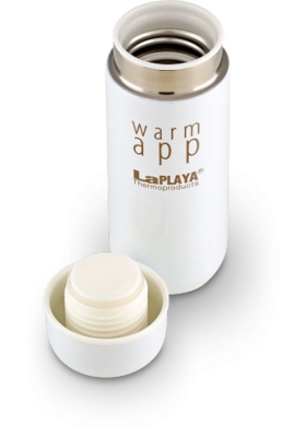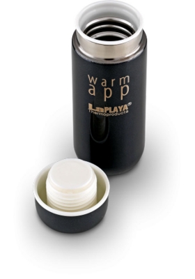 Новая разработка компании – эргономичные и компактные термосы из серии LaPLAYA WARM APP – впечатляют и удивляют многих. Полноценный термос, размер которого чуть больше габаритов смартфона, легко помещается в карман, удобен в использовании, и отличается оригинальным дизайном. Такой термос – только для одного человека (индивидуальное использование), объем модели – 0,2л.