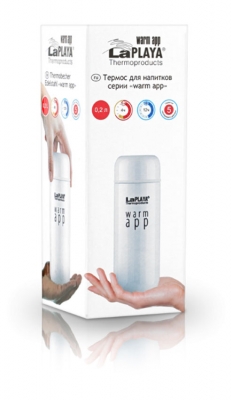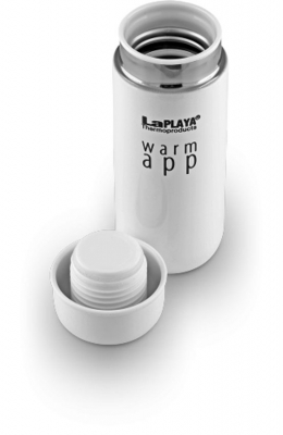 Новая разработка компании – эргономичные и компактные термосы из серии LaPLAYA WARM APP – впечатляют и удивляют многих. Полноценный термос, размер которого чуть больше габаритов смартфона, легко помещается в карман, удобен в использовании, и отличается оригинальным дизайном. Такой термос – только для одного человека (индивидуальное использование), объем модели – 0,2л.