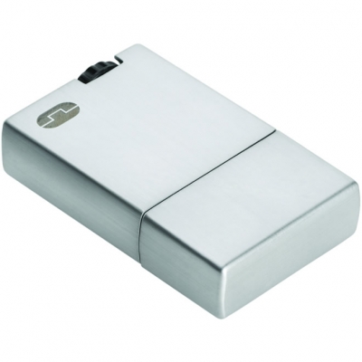 Зажигалка с навесной крышкой, выполненная в стиле светлого хрома.